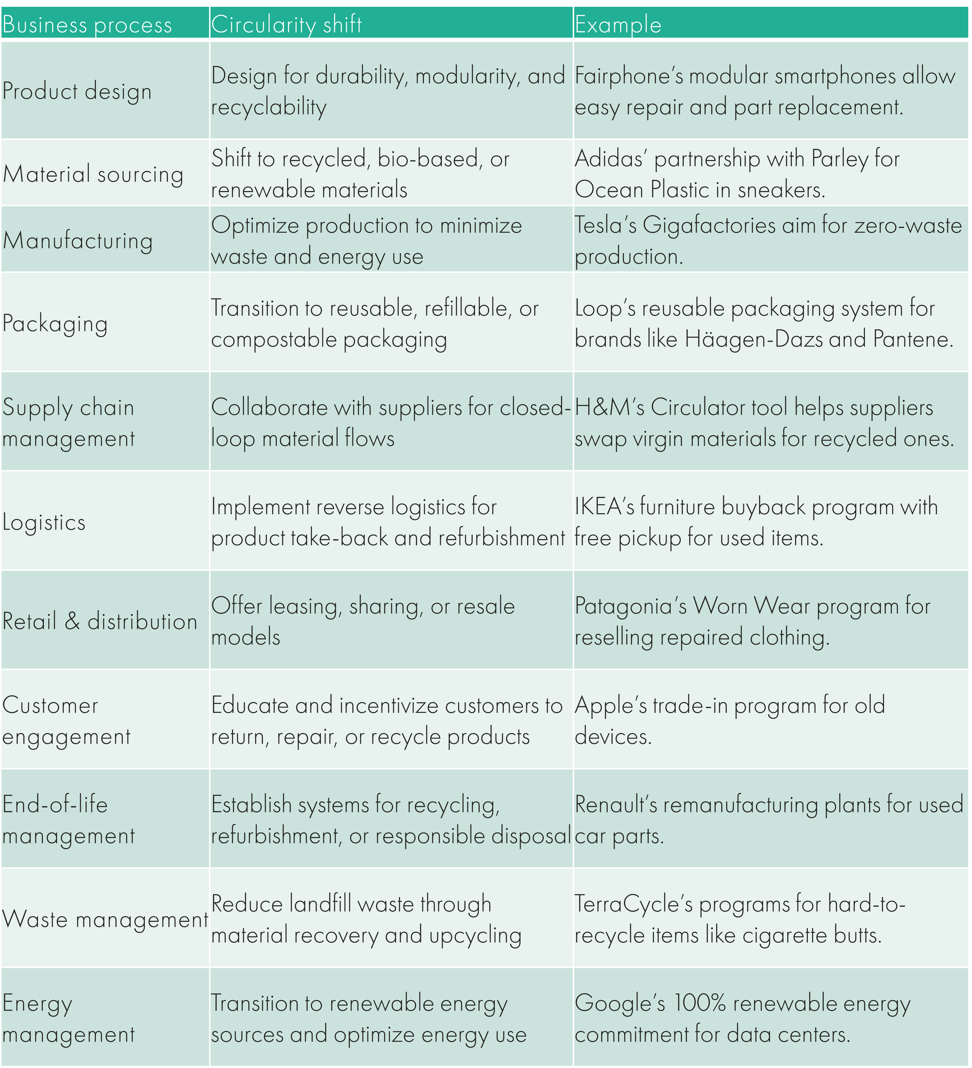 Reuse (e.g., IKEA’s furniture buyback program)