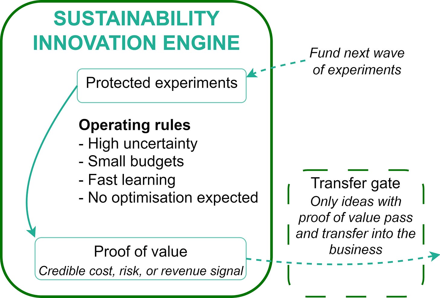 ✅ How to design a lightweight sustainability loonshot engine that protects early ideas and connects them to the core business